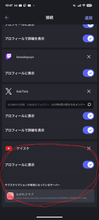 ながれクラブ入り方 投稿者: ケイスケ | 2025年12月31日 0件のコメント スマホ版 1,自分のプロフィールの右上の歯車おして 2,接続の所押して 3,自分のYouTubeアカウントと接続したらOK!